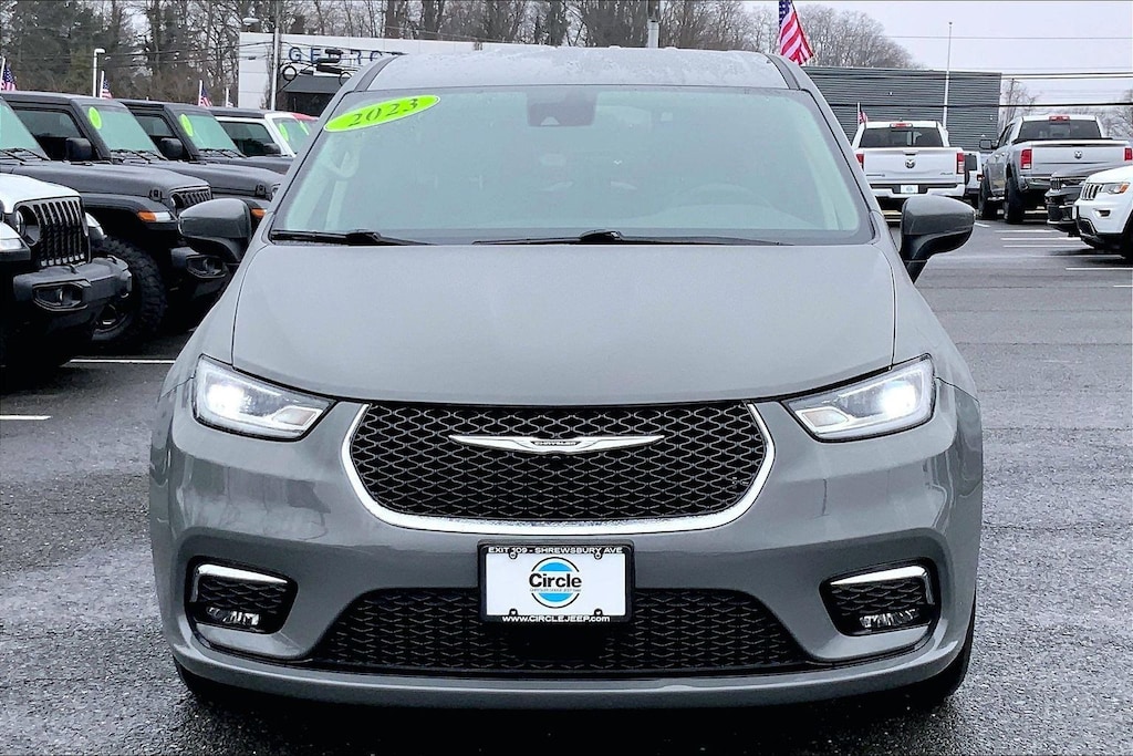 WE ARE OPEN FOR ALL YOUR SALES AND SERVICE NEEDS! COMPLETE ONLINE BUYING EXPERIENCE AVAILABLE! Circle CDJR is proud to offer this fantastic 2023 Chrysler Pacifica a truly handsome Minivan/Van with the following Features: Quick Order Package 27L, FCA US LLC Certified Pre-Owned Certified, 10.1" Touchscreen Display, 17" x 7.0" Aluminum Wheels, 3.25 Axle Ratio, 3rd row seats: split-bench, 4-Wheel Disc Brakes, 6 Speakers, ABS brakes, Air Conditioning, Alloy wheels, AM/FM radio: SiriusXM, Apple CarPlay, Apple CarPlay/Android Auto, Audio memory, Automatic temperature control, Black Seats, Brake assist, Bumpers: body-color, Caprice Leatherette Bucket Seats, Compass, Delay-off headlights, Disassociated Touchscreen Display, Driver door bin, Driver vanity mirror, Driver's Seat Mounted Armrest, Dual front impact airbags, Dual front side impact airbags, Electronic Stability Control, Four wheel independent suspension, Front anti-roll bar, Front Bucket Seats, Front dual zone A/C, Front Fascia Air Deflectors, Front fog lights, Front reading lights, Fully automatic headlights, Google Android Auto, GPS Antenna Input, Heated door mirrors, Heated front seats, Heated steering wheel, Illuminated entry, Integrated Active Noise Cancellation, Integrated Center Stack Radio, Knee airbag, Low tire pressure warning, Memory seat, Occupant sensing airbag, Outside temperature display, Overhead airbag, Overhead console, Panic alarm, ParkView Rear Back-Up Camera, Passenger door bin, Passenger seat mounted armrest, Passenger vanity mirror, Power door mirrors, Power driver seat, Power Liftgate, Power steering, Power windows, Radio data system, Radio: Uconnect 5 w/10.1" Display, Rain sensing wipers, Rear air conditioning, Rear reading lights, Rear window defroster, Rear window wiper, Reclining 3rd row seat, Remote keyless entry, Security system, Speed control, Split folding rear seat, Spoiler, Steering wheel mounted audio controls, Tachometer, Telescoping steering wheel, Tilt steering wheel, Touring Suspension, Traction control, Trip computer, Turn signal indicator mirrors, USB Host Flip, Variably intermittent wipers, and Voltmeter. 19/28 City/Highway MPG