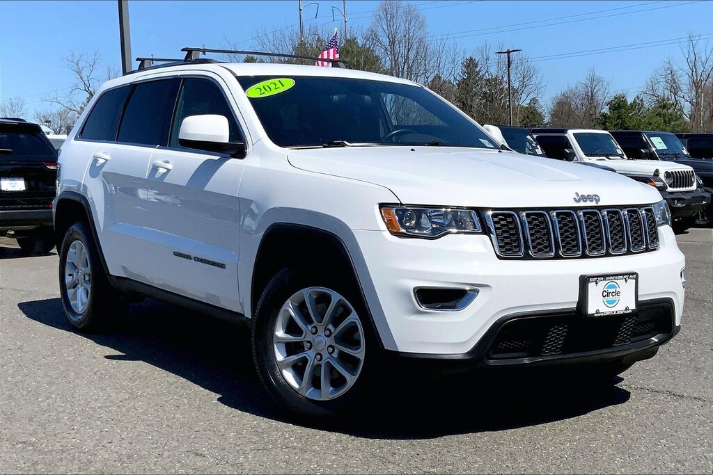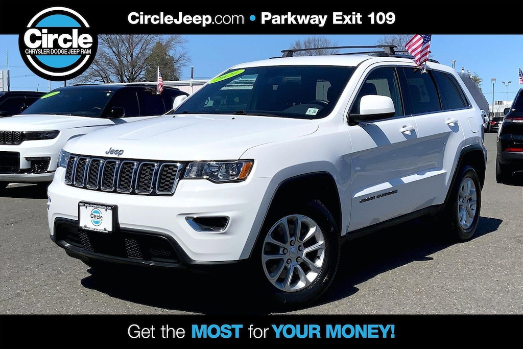 WE ARE OPEN FOR ALL YOUR SALES AND SERVICE NEEDS! COMPLETE ONLINE BUYING EXPERIENCE AVAILABLE! Circle CDJR is proud to offer this gorgeous 2021 Jeep Grand Cherokee a truly fantastic SUV with the following Features: Quick Order Package 2BE Laredo E, FCA US LLC Certified Pre-Owned Certified, 4WD, 3.45 Rear Axle Ratio, 4-Wheel Disc Brakes, 6 Speakers, ABS brakes, Air Conditioning, Alloy wheels, AM/FM radio: SiriusXM, Anti-whiplash front head restraints, Apple CarPlay, Apple CarPlay/Android Auto, Automatic temperature control, Brake assist, Bumpers: body-color, Cloth Bucket Seats, Compass, Delay-off headlights, Driver door bin, Driver vanity mirror, Dual front impact airbags, Dual front side impact airbags, Electronic Stability Control, Four wheel independent suspension, Front anti-roll bar, Front Bucket Seats, Front Center Armrest w/Storage, Front dual zone A/C, Front fog lights, Front License Plate Bracket, Front reading lights, Fully automatic headlights, Google Android Auto, GPS Antenna Input, Heated door mirrors, Illuminated entry, Integrated Voice Command w/Bluetooth, Knee airbag, Leather Shift Knob, Low tire pressure warning, Normal Duty Suspension, Occupant sensing airbag, Outside temperature display, Overhead airbag, Overhead console, Panic alarm, ParkView Rear Back-Up Camera, Passenger door bin, Passenger vanity mirror, Power door mirrors, Power driver seat, Power steering, Power windows, Radio data system, Radio: Uconnect 4 w/7" Display, Rear anti-roll bar, Rear reading lights, Rear seat center armrest, Rear window defroster, Rear window wiper, Remote keyless entry, Roof rack: rails only, Speed control, Speed-sensing steering, Speed-Sensitive Wipers, Split folding rear seat, Spoiler, Steering Wheel Mounted Audio Controls, Steering wheel mounted audio controls, Tachometer, Telescoping steering wheel, Tilt steering wheel, Traction control, Trip computer, Variably intermittent wipers, and Wheels: 18" x 8.0" Fine Silver Aluminum. Odometer is 15193 miles below market average!