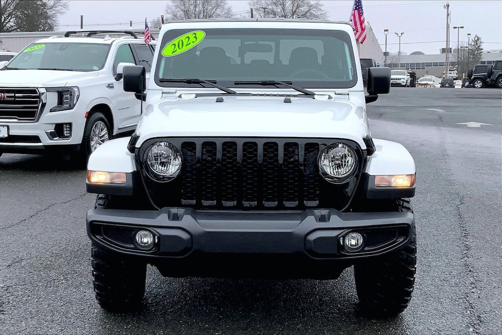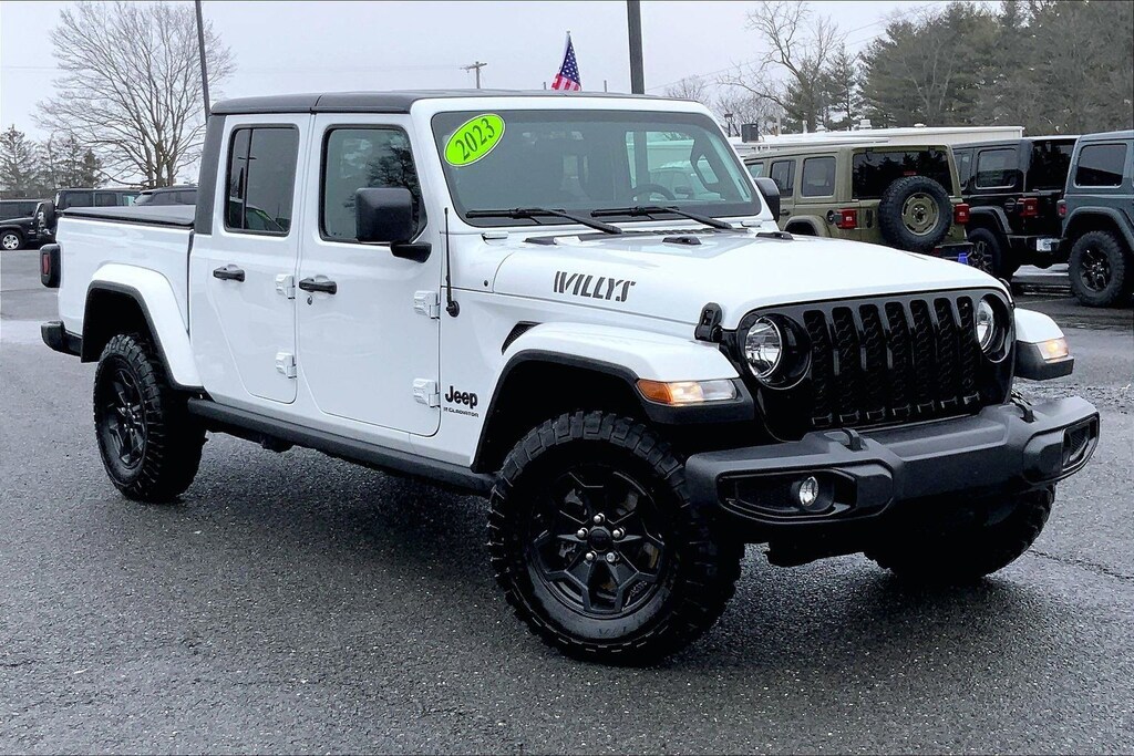 WE ARE OPEN FOR ALL YOUR SALES AND SERVICE NEEDS! COMPLETE ONLINE BUYING EXPERIENCE AVAILABLE! Circle CDJR is proud to offer this beautiful 2023 Jeep Gladiator a positively fantastic Truck with the following Features: Cold Weather Group, Quick Order Package 24W Willys (4-Wheel Drive Decal, 97 MPH Vehicle Max Speed Calibration, Anti-Spin Differential Rear Axle, Automatic Headlamps, Black Grille, Body Color Fender Flares (2-Piece), Deep Tint Sunscreen Windows, Front 1-Touch Down Power Windows, Front Heavy Duty Red Accent Shock Absorbers, Mold In Color Bumper w/Gloss Black, MOPAR All-Weather Slush Mats, Power Heated Mirrors, Power Tailgate Lock, Premium Wrapped Steering Wheel, Protection Sill Rails, Rear Heavy Duty Red Accent Shock Absorbers, Remote Keyless Entry, Security Alarm, Speed Sensitive Power Locks, Sun Visors w/Illuminated Vanity Mirrors, Wheels: 17" x 7.5" Black Aluminum, Willys, and Willys Hood Decal), Technology Group (Air Conditioning w/Auto Temperature Control, Cluster 7.0" TFT Color Display, For More Info, Call 800-643-2112, GPS Antenna Input, SiriusXM Radio Service, and SiriusXM Satellite Radio), FCA US LLC Certified Pre-Owned Certified, 3.73 Rear Axle Ratio, 4-Wheel Disc Brakes, 4G LTE Wi-Fi Hot Spot, 8 Speakers, ABS brakes, Air Conditioning, AM/FM radio, Apple CarPlay, Apple CarPlay/Android Auto, Black 3-Piece Hard Top, Brake assist, Cloth Low-Back Bucket Seats, Compass, Delay-off headlights, Driver door bin, Driver vanity mirror, Dual front impact airbags, Dual front side impact airbags, Electronic Stability Control, Emergency communication system, Freedom Panel Storage Bag, Front anti-roll bar, Front Bucket Seats, Front Center Armrest w/Storage, Front Door Locks 2-Door Passive Entry (DISC), Front fog lights, Front License Plate Bracket, Front reading lights, Google Android Auto, Integrated Center Stack Radio, Integrated roll-over protection, Integrated Voice Command w/Bluetooth, Low tire pressure warning, MOPAR Spray In Bedliner, No Soft Top, Normal Duty Suspension, Occupant sensing airbag, Outside temperature display, ParkView Rear Back-Up Camera, Passenger door bin, Passenger vanity mirror, Power steering, Radio data system, Radio: Uconnect 4 w/7" Display, Rear anti-roll bar, Rear reading lights, Rear Sliding Window, Rear Window Defroster, Speed control, Split folding rear seat, Steering wheel mounted audio controls, Tachometer, Telescoping steering wheel, Tilt steering wheel, Traction control, Trip computer, USB Host Flip, Variably intermittent wipers, Wheels: 17" x 7.5" Black Aluminum w/Gray Pad (DISC), and Wheels: 17" x 7.5" Black Steel Styled. Odometer is 6405 miles below market average!