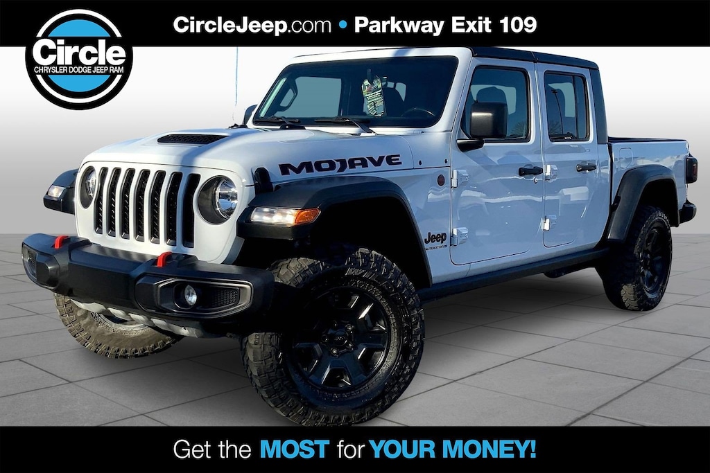 WE ARE OPEN FOR ALL YOUR SALES AND SERVICE NEEDS! COMPLETE ONLINE BUYING EXPERIENCE AVAILABLE! Circle CDJR is proud to offer this beautiful-looking 2023 Jeep Gladiator a truly terrific Truck with the following Features: Cold Weather Group (Heated Front Seats), Quick Order Package 24D Mojave, Trailer Tow Package (Class IV Receiver Hitch and Trailer Hitch Zoom), FCA US LLC Certified Pre-Owned Certified, 4-Wheel Disc Brakes, 4.10 Rear Axle Ratio, 9 Speakers, 97 MPH Vehicle Max Speed Calibration, ABS brakes, Air Conditioning, Alloy wheels, AM/FM radio: SiriusXM, Apple CarPlay/Android Auto, Auto-dimming Rear-View mirror, Automatic temperature control, Black 3-Piece Hard Top, Brake assist, Compass, Delay-off headlights, Driver door bin, Driver vanity mirror, Dual front impact airbags, Dual front side impact airbags, Electronic Stability Control, Emergency communication system, Freedom Panel Storage Bag, Front anti-roll bar, Front Bucket Seats, Front Center Armrest w/Storage, Front dual zone A/C, Front fog lights, Front reading lights, Fully automatic headlights, Garage door transmitter, Heated door mirrors, Heavy Duty Suspension w/Gas Shocks, Illuminated entry, Integrated roll-over protection, Leather steering wheel, Low tire pressure warning, MOPAR All-Weather Slush Mats, Navigation System, Occupant sensing airbag, Outside temperature display, Panic alarm, ParkView Rear Back-Up Camera, Passenger door bin, Passenger vanity mirror, Power door mirrors, Power steering, Power windows, Premium Cloth Seats w/Sport Bolsters, Radio data system, Radio: Uconnect 4C Nav w/8.4" Display, Rear anti-roll bar, Rear reading lights, Rear Sliding Window, Rear Window Defroster, Remote keyless entry, Security system, Speed control, Split folding rear seat, Steering wheel mounted audio controls, Tachometer, Telescoping steering wheel, Tilt steering wheel, Traction control, Trip computer, Variably intermittent wipers, Voltmeter, and Wheels: 17" x 7.5" Low Gloss Black Aluminum.