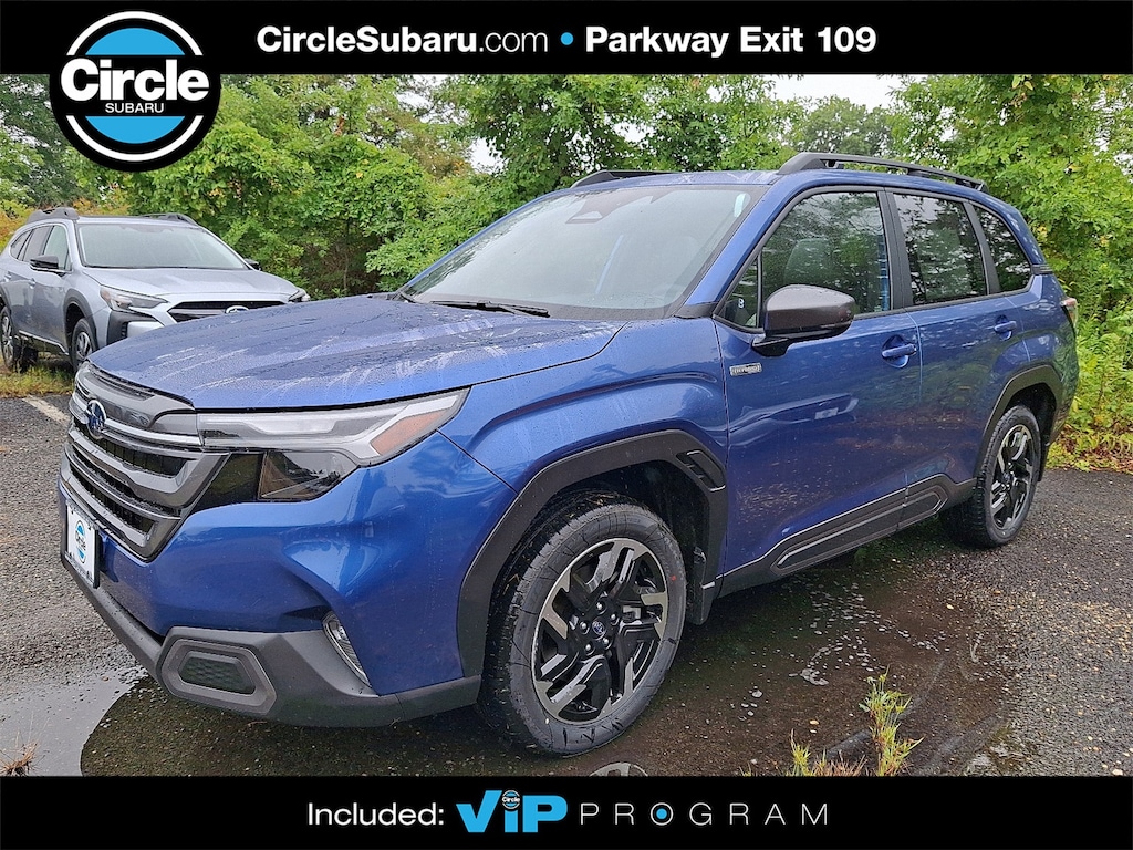 WE ARE OPEN FOR ALL YOUR SALES AND SERVICE NEEDS! COMPLETE ONLINE BUYING EXPERIENCE AVAILABLE! Circle Subaru is proud to offer this good-looking 2025 Subaru Forester Hybrid a truly fantastic SUV with the following Features: Standard Model, 2.5L 4-Cylinder DOHC 16V, 11 Speakers, 4-Wheel Disc Brakes, ABS brakes, Air Conditioning, All-Weather Floor Liners, Alloy wheels, AM/FM radio: SiriusXM with 360L, Anti-whiplash front head restraints, Auto High-beam Headlights, Auto-Dimming Exterior Mirror with Approach Light, Auto-Dimming Mirror with Compass and HomeLink, Automatic temperature control, Brake assist, Bumpers: body-color, Compass, Driver door bin, Driver vanity mirror, Dual front impact airbags, Dual front side impact airbags, Electronic Stability Control, Emergency communication system: MySubaru Safety (3-year free trial), Exterior Parking Camera Rear, Four wheel independent suspension, Front anti-roll bar, Front Bucket Seats, Front Center Armrest, Front dual zone A/C, Front fog lights, Front reading lights, Fully automatic headlights, harman/kardon® Speakers, Heated door mirrors, Heated Front Bucket Seats, Heated front seats, Illuminated entry, Knee airbag, LED Upgrade, Low tire pressure warning, Navigation system: TomTom Navigation w/what3words, Occupant sensing airbag, Outside temperature display, Overhead airbag, Overhead console, Panic alarm, Passenger door bin, Passenger vanity mirror, Power door mirrors, Power driver seat, Power Liftgate, Power moonroof: Panoramic, Power passenger seat, Power steering, Power windows, Radio data system, Radio: Subaru 11.6" Multimedia Navigation System, Rear anti-roll bar, Rear seat center armrest, Rear window defroster, Rear window wiper, Remote keyless entry, Security system, Speed control, Speed-sensing steering, Splash Guards, Split folding rear seat, Spoiler, StarTex Upholstery, Steering wheel mounted audio controls, Tachometer, Telescoping steering wheel, Tilt steering wheel, Traction control, Trip computer, Turn signal indicator mirrors, Variably intermittent wipers, and Wheels: 18" x 7.0 J Dark Metallic Aluminum-Alloy.