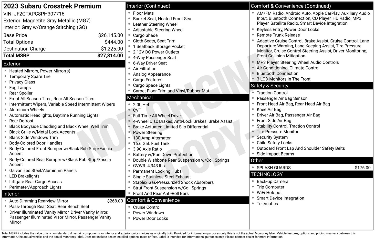 Mileage: 64,137 miles miles, MPG Range: 28/33 mpg, Engine: 2.0L i-4, Transmission: Lineartronic CVT, Drive Line: AWD, Exterior Color: Magnetite Gray Metallic, Interior Color: Gray W/Orange Stitching,Stock #: U0061