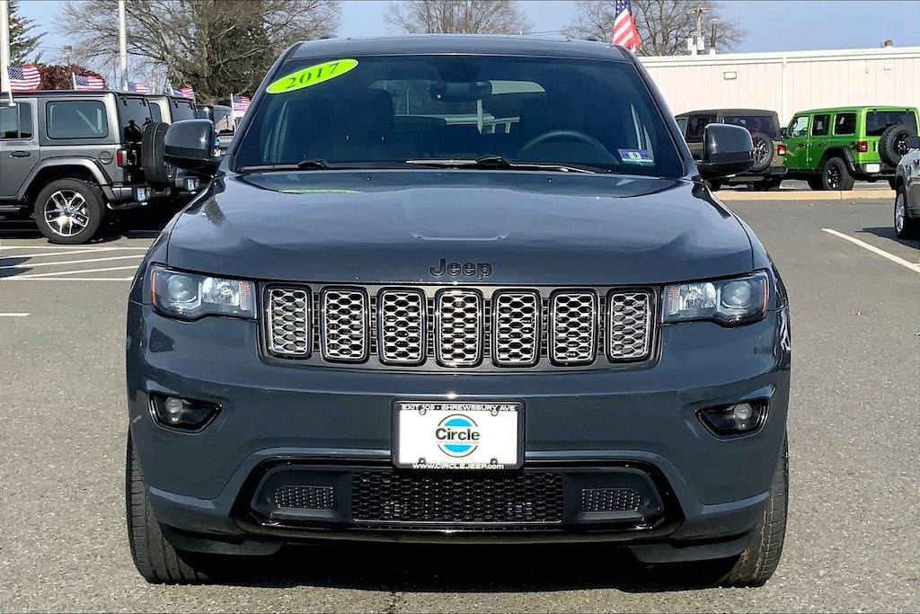 WE ARE OPEN FOR ALL YOUR SALES AND SERVICE NEEDS! COMPLETE ONLINE BUYING EXPERIENCE AVAILABLE! Circle CDJR is proud to offer this terrific 2017 Jeep Grand Cherokee a positively great-looking SUV with the following Features: Altitude IV Package, Quick Order Package 23Z Altitude (DISC) (1-Year SiriusXM Radio Service, 6 Month Trial (Registration Required), 8.4" Touchscreen Display, Altitude Grille, Anodized Gun Metal Interior Accents, Auto-Dimming Rear-View Mirror, Black Suede Seats w/Black Stitching (DISC), Body Color Claddings, Body Color Fascia, Body Color Shark Fin Antenna, Dark Day Light Opening Moldings, Dark Headlamp Bezel Finish, Dark Lens Taillamps, Delete Laredo Badge, For Details Visit DriveUconnect.com, For More Info, Call 800-643-2112, Front Accent/Body Color Fascia, Gloss Black Fascia Applique, Instrument Cluster w/Off-Road Disp. Pages, Jeep Black Gloss Badging, Power 4-Way Driver Lumbar Adjust, Power 8-Way Driver/Manual Passenger Seat, Radio: Uconnect 3C w/8.4" Display, Rear Accent/Body Color Fascia, Rear Fascia Gloss Black Step Pad, Roadside Assistance & 9-1-1 Call, Single Exhaust w/Bright Tip, SiriusXM Satellite Radio, Steering Wheel Mounted Audio Controls, Uconnect Access, and Wheels: 20" x 8.0" Gloss Black Aluminum (DISC)), Security & Convenience Group (115V Auxiliary Power Outlet, Power Liftgate, Security Alarm, and Universal Garage Door Opener), 4WD, 17" x 8.0" Aluminum Wheels, 3.45 Rear Axle Ratio, 4-Wheel Disc Brakes, 6 Speakers, ABS brakes, Air Conditioning, Alloy wheels, AM/FM radio, Anti-whiplash front head restraints, Automatic temperature control, Brake assist, Bumpers: body-color, Cloth Low-Back Bucket Seats, Compass, Delay-off headlights, Driver door bin, Driver vanity mirror, Dual front impact airbags, Dual front side impact airbags, Electronic Stability Control, Four wheel independent suspension, Front anti-roll bar, Front Bucket Seats, Front Center Armrest w/Storage, Front dual zone A/C, Front fog lights, Front License Plate Bracket (DISC), Front reading lights, Fully automatic headlights, Heated door mirrors, Illuminated entry, Knee airbag, Leather Shift Knob, Low tire pressure warning, Normal Duty Suspension, Occupant sensing airbag, Outside temperature display, Overhead airbag, Overhead console, Panic alarm, ParkView Rear Back-Up Camera, Passenger door bin, Passenger vanity mirror, Power door mirrors, Power steering, Power Sunroof (DISC), Power windows, Radio data system, Radio: Uconnect 3 w/5" Display, Rear anti-roll bar, Rear reading lights, Rear seat center armrest, Rear window defroster, Rear window wiper, Remote keyless entry, Speed control, Speed-Sensitive Wipers, Split folding rear seat, Spoiler, Steering wheel mounted audio controls, Tachometer, Telescoping steering wheel, Tilt steering wheel, Traction control, Trip computer, and Variably intermittent wiperS. Odometer is 64985 miles below market average!