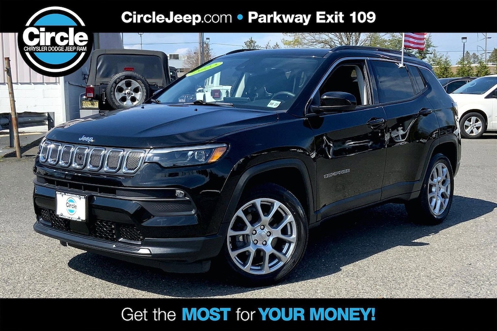 WE ARE OPEN FOR ALL YOUR SALES AND SERVICE NEEDS! COMPLETE ONLINE BUYING EXPERIENCE AVAILABLE! Circle CDJR is proud to offer this good-looking 2022 Jeep Compass a truly fantastic SUV with the following Features: Lux Driver Assist (115V Auxiliary Power Outlet, 2nd Row USB Type A/C Charge Only, 360 Surround View Camera System, Adaptive Cruise Control w/Stop & Go, Air Conditioning ATC w/Dual Zone Control, All-Season Floor Mats, Foot Activated Open 'N Go Liftgate, Humidity Sensor, P&P Park & Unpark Assist System, ParkSense Fr/Rr Park Assist System, Power Liftgate, Premium LED Fog Lamps, Rain Sensitive/Intermittent Wipers, Reversible Carpet/Vinyl Cargo Mat, Universal Garage Door Opener, Windshield Wiper De-Icer, and Wireless Charging Pad), Premium Lighting Group (LED Low/Highbeam Projector Headlamps and Premium Taillamps), Quick Order Package 2GL, Sun and Sound Group (Power Front/Fixed Rear Full Sunroof and Premium Alpine Speaker System), FCA US LLC Certified Pre-Owned Certified, 4WD, 3.73 Axle Ratio, 4-Wheel Disc Brakes, 6 Speakers, ABS brakes, Air Conditioning, Alloy wheels, AM/FM radio: SiriusXM, Anti-whiplash front head restraints, Auto High-beam Headlights, Auto-dimming Rear-View mirror, Brake assist, Bumpers: body-color, Compass, Delay-off headlights, Driver door bin, Driver vanity mirror, Dual front impact airbags, Dual front side impact airbags, Electronic Stability Control, Emergency communication system: SiriusXM Guardian, Four wheel independent suspension, Front anti-roll bar, Front Bucket Seats, Front Center Armrest w/Storage, Front fog lights, Front License Plate Bracket, Front reading lights, Fully automatic headlights, Heated door mirrors, Heated front seats, Heated steering wheel, Illuminated entry, Knee airbag, Leather Shift Knob, Leather Trimmed Bucket Seats, Low tire pressure warning, Occupant sensing airbag, Outside temperature display, Overhead airbag, Overhead console, Panic alarm, ParkView Rear Back-Up Camera, Passenger door bin, Passenger vanity mirror, Power door mirrors, Power driver seat, Power steering, Power windows, Radio: Uconnect 5 w/10.1" Display, Rear anti-roll bar, Rear seat center armrest, Rear window defroster, Rear window wiper, Remote keyless entry, Roof rack: rails only, Security system, Speed control, Split folding rear seat, Spoiler, Steering wheel mounted audio controls, Tachometer, Telescoping steering wheel, Tilt steering wheel, Traction control, Trip computer, Variably intermittent wipers, and Wheels: 18" x 7.0" Painted Aluminum. 22/30 City/Highway MPG