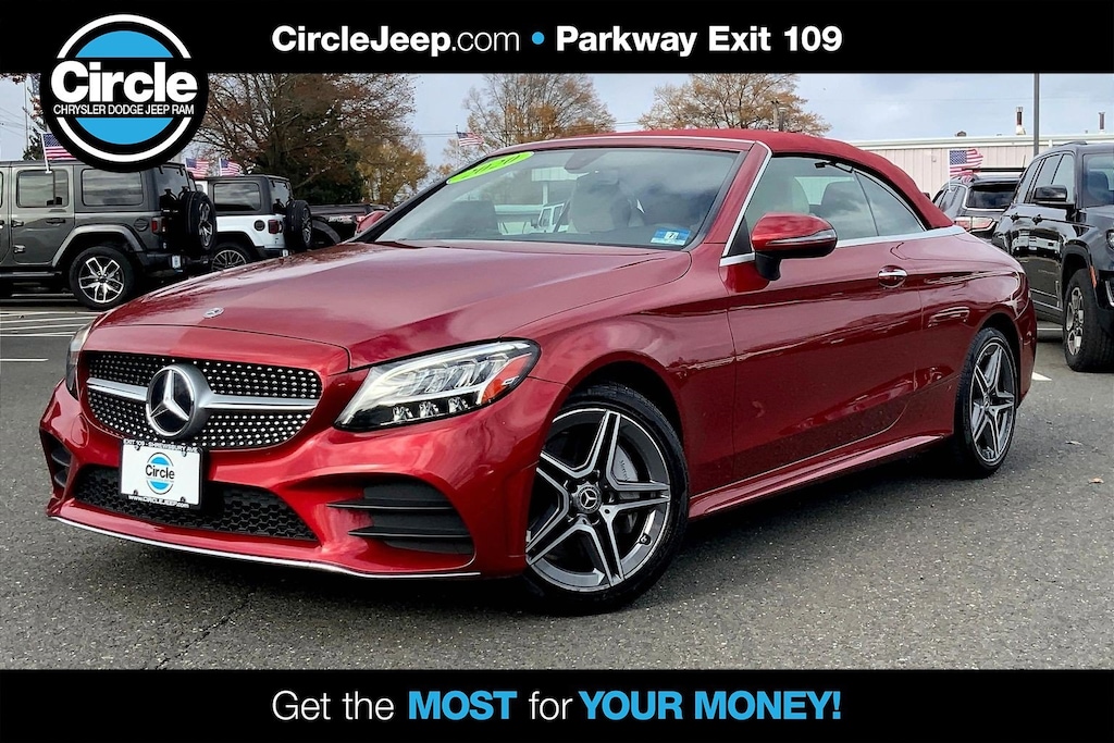 WE ARE OPEN FOR ALL YOUR SALES AND SERVICE NEEDS! COMPLETE ONLINE BUYING EXPERIENCE AVAILABLE! Circle CDJR is proud to offer this terrific 2020 Mercedes-Benz C-Class a positively wonderful-looking Convertible with the following Features: 4MATIC®, 13 Speakers, 4-Way Lumbar Support, 4-Wheel Disc Brakes, ABS brakes, Air Conditioning, Alloy wheels, AM/FM radio: SiriusXM, Android Auto®, Anti-whiplash front head restraints, Apple CarPlay®, Apple CarPlay®/Android Auto®, Auto tilt-away steering wheel, Auto-dimming door mirrors, Auto-dimming Rear-View mirror, Automatic temperature control, Black SoftTop, Brake assist, Bumpers: body-color, Child-Seat-Sensing Airbag, Compass, Convertible roof lining, Convertible roof wind blocker, Delay-off headlights, Driver door bin, Driver vanity mirror, Dual front impact airbags, Dual front side impact airbags, Electronic Stability Control, Emergency communication system: Mercedes me connect, Exterior Parking Camera Rear, Four wheel independent suspension, Front anti-roll bar, Front Bucket Seats, Front Center Armrest, Front dual zone A/C, Front reading lights, Fully automatic headlights, Garage door transmitter: Homelink, Genuine wood console insert, Genuine wood door panel insert, Glass rear window, HD-Radio, Head restraints memory, Heated door mirrors, Heated Front Seats, Heated front seats, Illuminated entry, Integrated roll-over protection, Knee airbag, Low tire pressure warning, MB-Tex Upholstery, Memory seat, Occupant sensing airbag, Outside temperature display, Overhead airbag, Overhead console, Panic alarm, Passenger door bin, Passenger vanity mirror, Power adjustable front head restraints, Power convertible roof, Power door mirrors, Power driver seat, Power Front Seats w/Driver Memory, Power passenger seat, Power steering, Power windows, Radio data system, Radio: Burmester® Surround Sound System, Rain sensing wipers, Rear anti-roll bar, Rear fog lights, Rear side impact airbag, Rear window defroster, Remote keyless entry, Security system, SiriusXM Radio, Smartphone Integration, Speed control, Speed-sensing steering, Split folding rear seat, Steering wheel memory, Steering wheel mounted audio controls, Tachometer, Telescoping steering wheel, Tilt steering wheel, Traction control, Trip computer, Turn signal indicator mirrors, Variably intermittent wipers, Weather band radio, and Wheels: 18" Split 5-Spoke. 21/29 City/Highway MPG